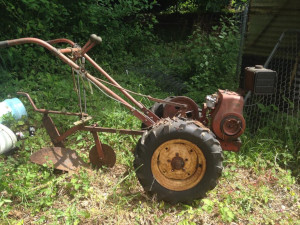 Pop built himself a motorized plow. Put a Briggs and Stratton engine on a pair of wheels with tractor tires and attached a plow to it. He let me plow a couple of times. He walked behind me, one might say, encouraging me, with a few expletives thrown in, to plow a straight furrow.