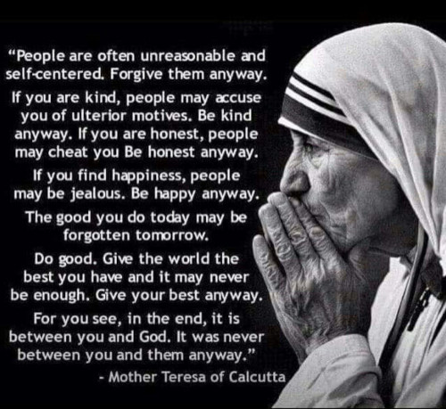 Mother Teresa came to be known world-wide. But I would like to know, how many children, how many broken people benefitted from her ministrations, with no one except God, knowing about it at all?
